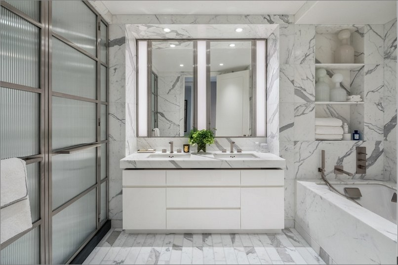 D’une surface habitable de 430 m², cet appartement de prestige est composé de grandes surfaces meublées dans un style contemporain, divisées en cinq chambres chacune ayant sa propre salle de bain. L’immense pièce à vivre est baignée de lumière grâce aux très grandes baies vitrées. La cuisine équipée de matériaux hautement qualitatifs pourrait accueillir les plus grands chefs, tout est prêt pour pouvoir donner des réception et des dînners dignes des plus grands restaurants français… Le marbre est très présent ainsi que dans les salles de bain. Le tout est sublimé par une collection d’œuvres d’art judicieusement parsemés à chaque coin de l’appartement , et surtout mis en valeur par la décoration signé Daniel Romualdez, membre du 2018 Architectural Digest’s AD100.